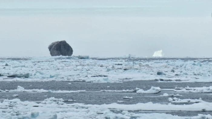 Fisherman’s sighting of unusually dark, diamond-shaped iceberg fuels speculation about ancient debris, volcanic ash, and glacial history.
