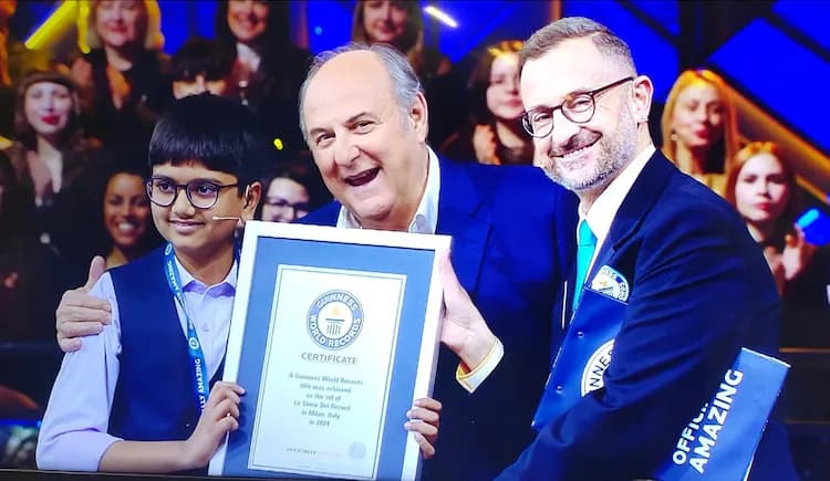 Aaryan achieved this extraordinary accomplishment on the prestigious Italian TV show, 'Lo Show Dei Record,' in Milan, Italy, on February 29, 2024.