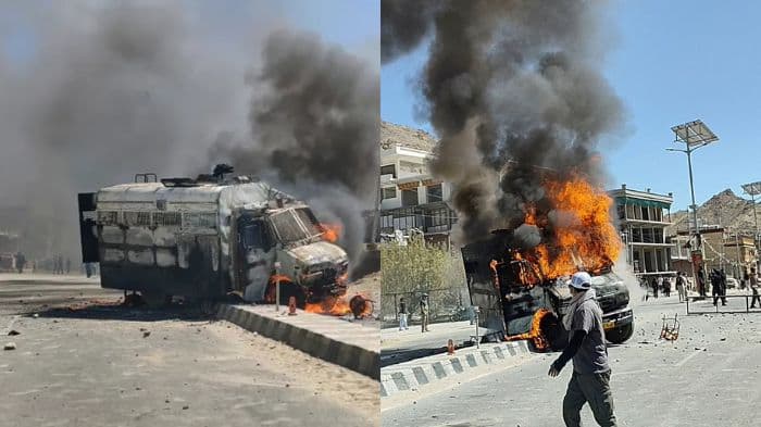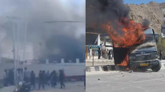 Massive protests erupted in Leh as demonstrators, supporting Sonam Wangchuk’s demand for full statehood and Sixth Schedule status for Ladakh, clashed with police, attacked the BJP office, and torched a police van ahead of talks scheduled for Oct 6.