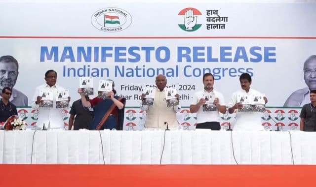 The party's five pillars are five ‘guarantees’-- 'Yuva Nyay' (for youth), 'Naari Nyay' (for women), 'Kisaan Nyay' (for farmers), 'Shramik Nyay' (for labourers) and 'Hissedari Nyay' (opportunities as per proportion in population).