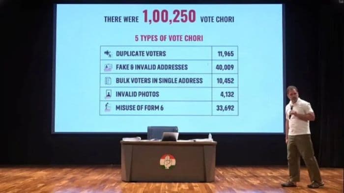 Calling it a “criminal fraud against the Constitution,” Gandhi unveils explosive data alleging massive voter manipulation in Bengaluru’s Mahadevapura, says pattern of ‘vote theft’ runs nationwide.