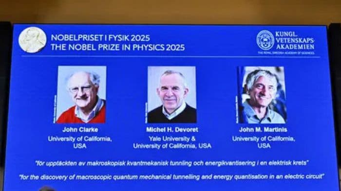 Quantum physicists John Clarke, Michel Devoret and John Martinis win 2025 Nobel Prize for demonstrating that quantum tunnelling and energy quantisation can occur in macroscopic electrical circuits
