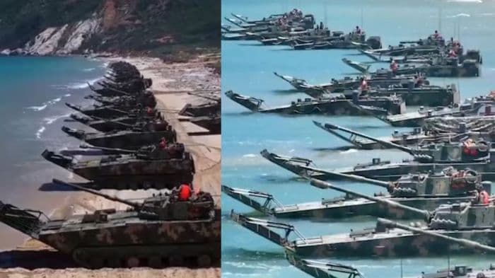 As Taiwan launches its biggest-ever war games, China releases footage of amphibious assault vessels near the Taiwan Strait, escalating regional tensions.